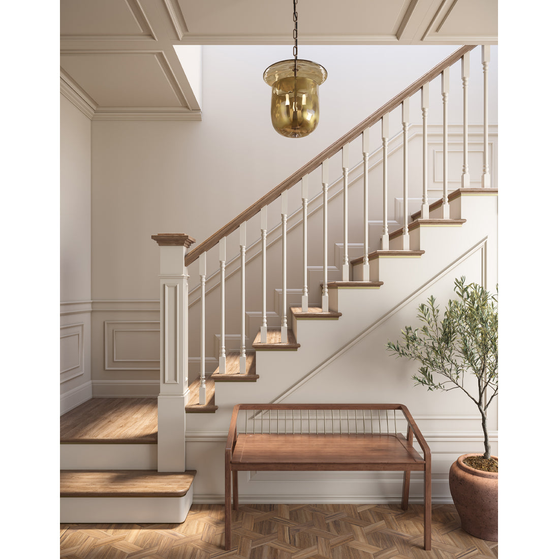 A modern reimagining of a traditional Hundi lamp, this pendant takes delight in gentle curves and a radial design with three lightbulbs.